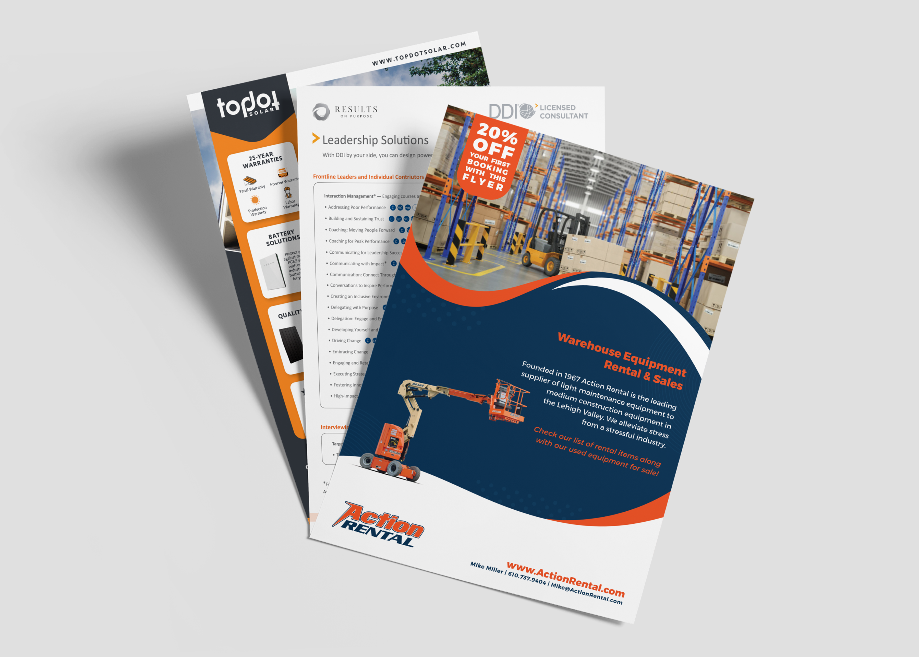 Make your brand feel connected and cohesive across all customer touch points with branded flyers, slides, catalogues, infographics, and more.