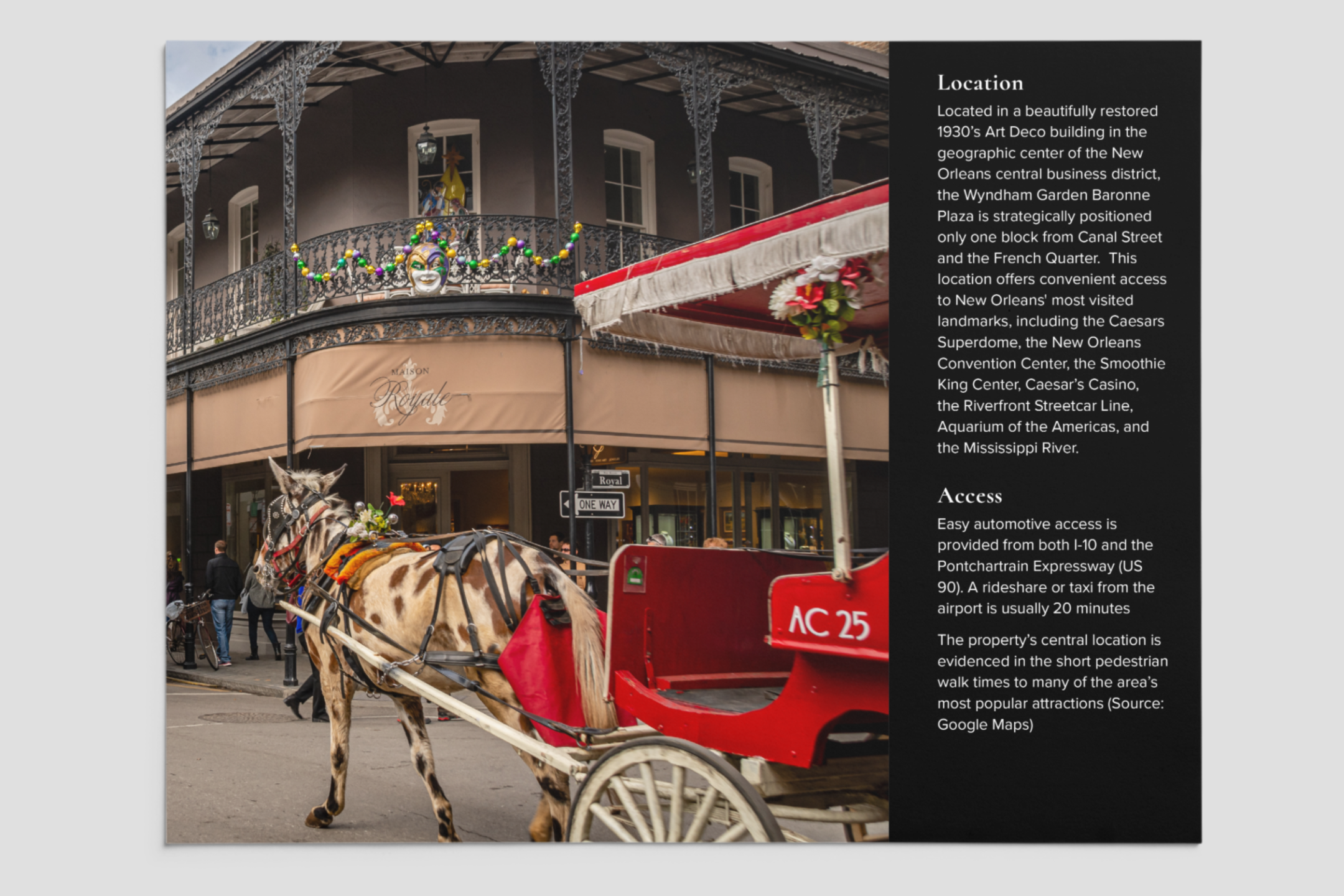 Client requested an offering memorandum with a clean, professional look that is consistent throughout, and shows the property and the market at its best.